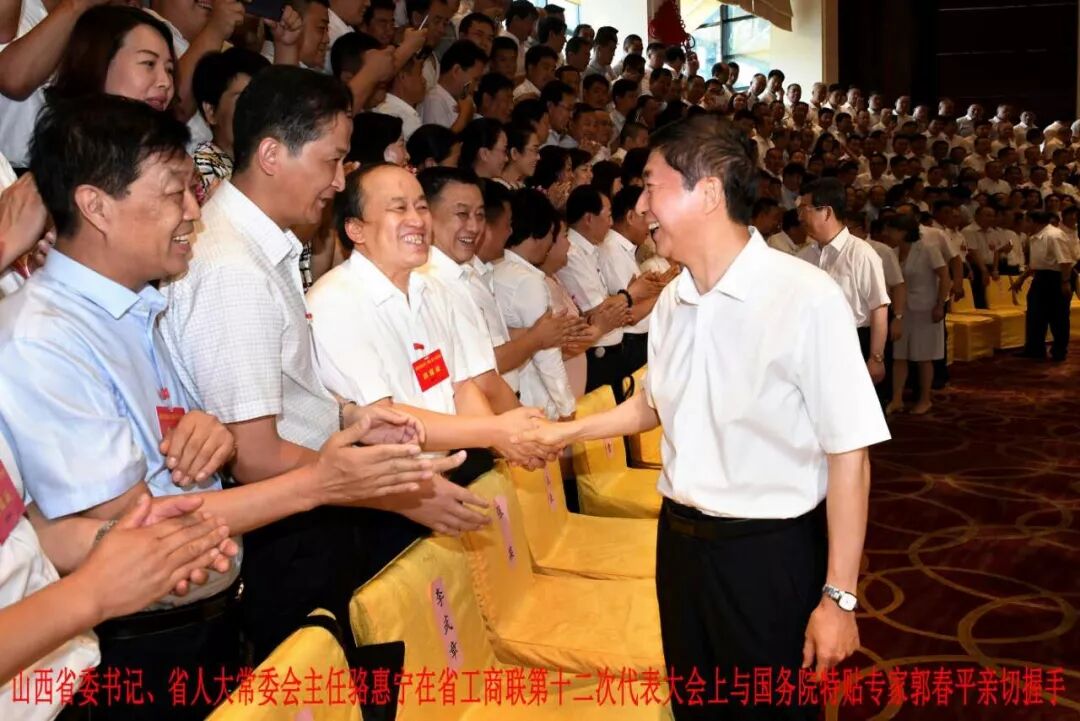 郭春平在山西两会上向楼阳生省长展示我司自主研发的“手机电气预警系统”