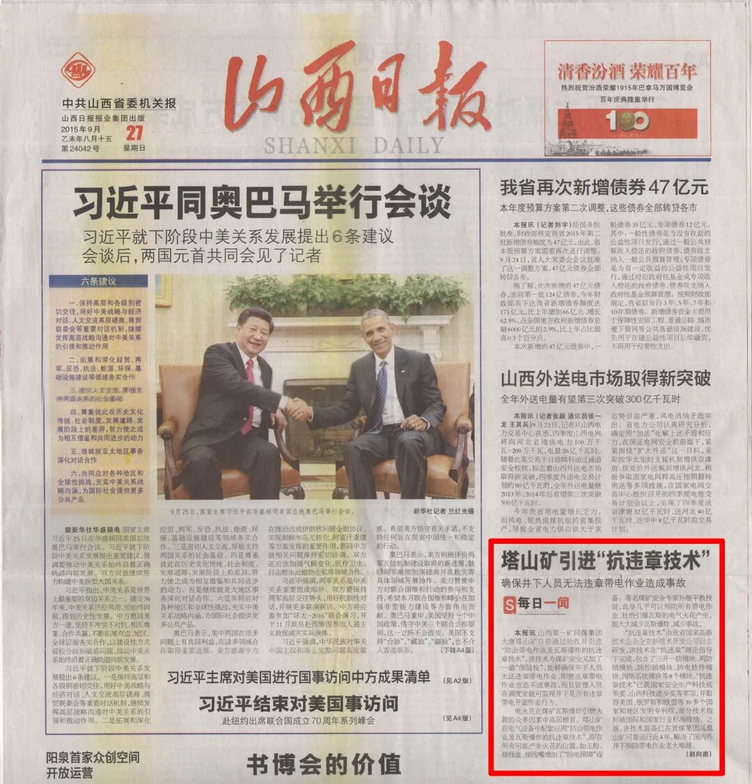 山西日报----塔山引进“抗违章技术”