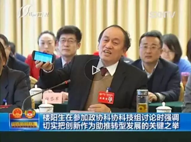 郭春平在山西两会上向楼阳生省长展示我司自主研发的“手机电气预警系统”