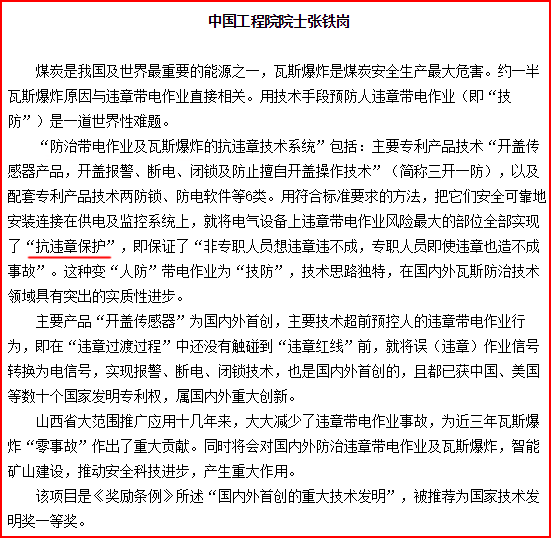 2018年1月19日于山西日报13版----张铁岗院士对智能“抗违章保护技术”的推荐信
